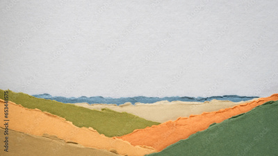 abstract valley landscape in green and earth pastel tones - a collection of handmade rag papers