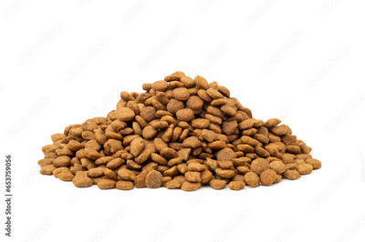 Heap of Dry dog food pellets isolated on white background