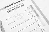 Safety First Text Note. Blank checklist paper during safety audit and risk verification. safety checklist form.
