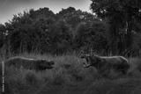 Hippo fight, Two big animals in the green grass, Okavango delta, Botswana in Africa. Hippo open muzzle, green forest vegetation.