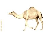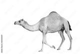 Arabian camel in motion against a clean white backdrop, desert animal of the Middle East