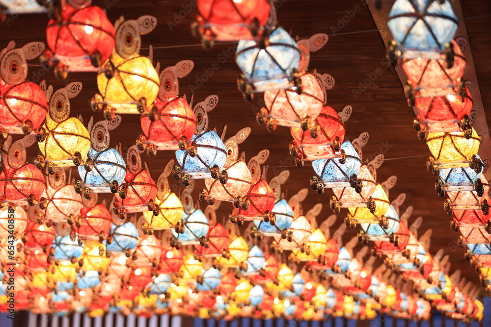 traditional rabbit shaped paper lantern in autumn festival market at Hong Kong