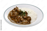 Japanese-style beef curry rice ( curry and rice are served together on the plate) Japanese curry is always served with rice.