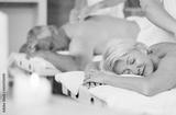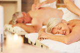 Beauty, back massage and senior couple at a spa for luxury, self care and muscle healing treatment. Health, wellness and elderly man and woman on retirement retreat for body therapy at natural salon.
