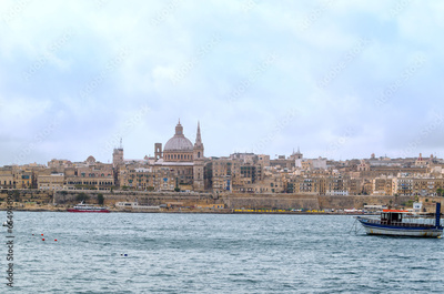 View of Valletta with the St. Pauls Cathedral, Malta.