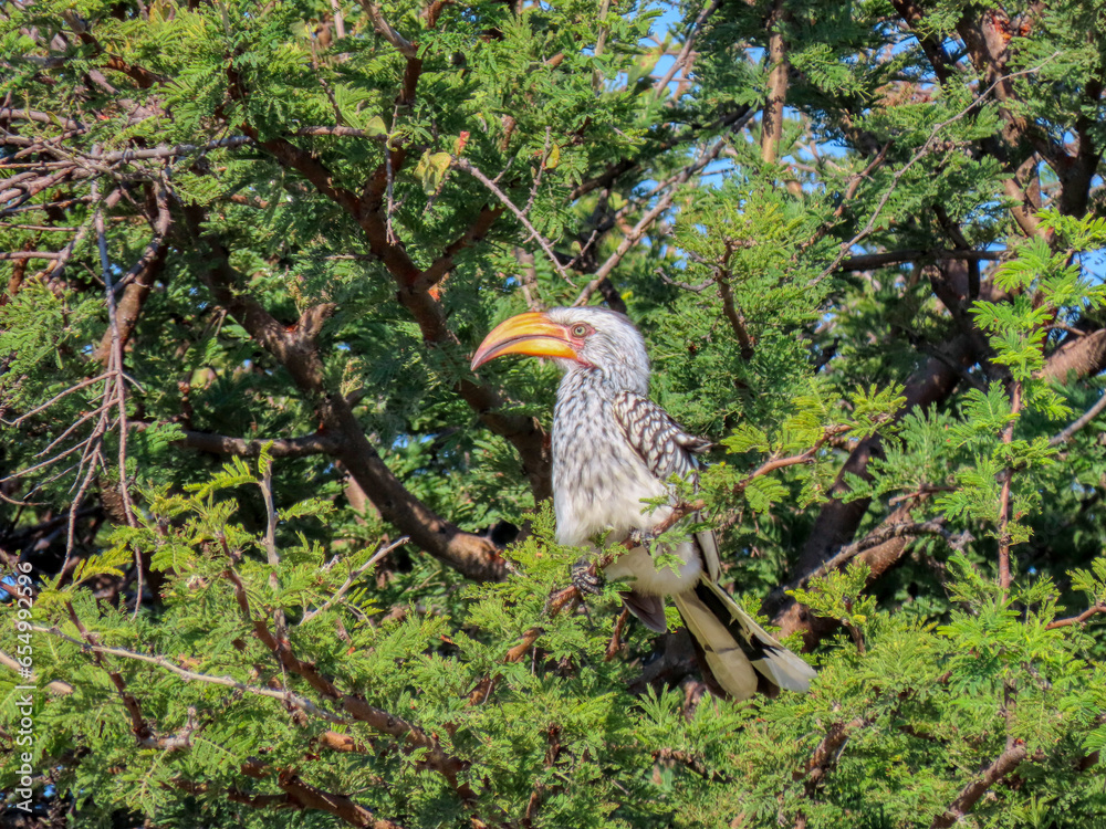 Okavango Delta in Botswana, hornbill bird in a tree side view, daytime
