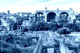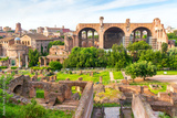 Panorama of Roman Forum, Rome, Italy. Ruina of Basilica of Constantine the Great in distance.