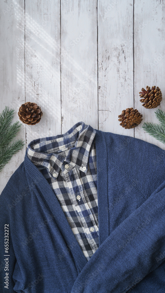 チェックのシャツとカーディガン|季節の変わり目の服装イメージ