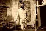 Urban Portrait of Handsome Hipster Man with a Beard Wearing a Gray Blank Hoodie with Space for your Logo or Design. Unique Mockup for Print