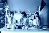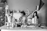Happy beautiful chinese women friends bonding at home and cooking delicious meal together- Playful asian female adults meeting and having fun at home, concepts about domestic life and friendship