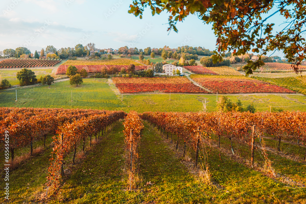 Castelvetro, Emilia Romagna, Italy. vineyards and hills in autumn