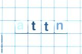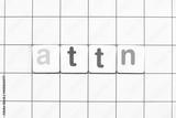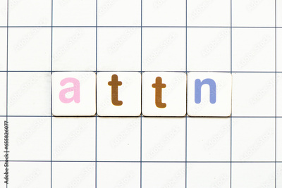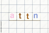 Colorful tile letter in word ATTN (Abbreviation of attention) on white grid background
