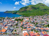 Tarrafal Town - Cape Verde Aerial View. Santiago Island Landscape of Tarrafal - popular tourist destination. The Republic of Cape Verde is an island country in the Atlantic Ocean. Africa.