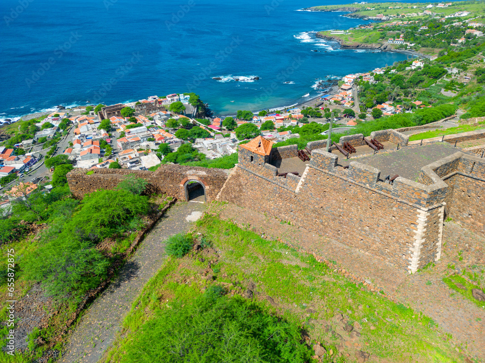 Cidade Velha Sao Filipe Royal Fortress Aerial View. The oldest city in the Republic of Cape Verde. The Republic of Cape Verde is an island country in the Atlantic Ocean. Africa.