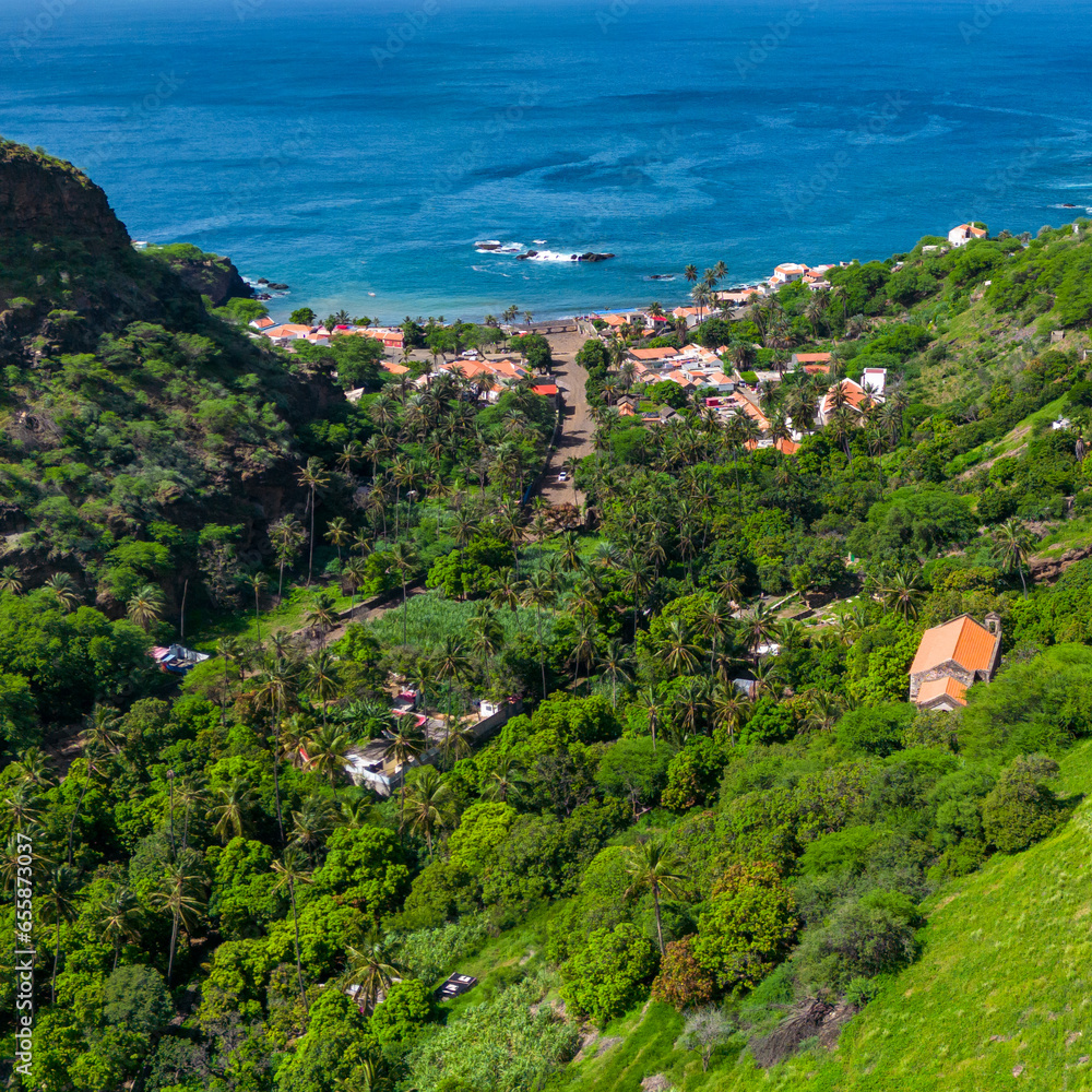 Cidade Velha Aerial View. The oldest city in the Republic of Cape Verde. Santiago Island Landscape. The Republic of Cape Verde is an island country in the Atlantic Ocean. Africa.
