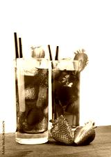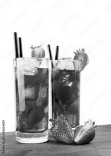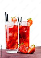 Strawberry cocktail with ice on old wood table