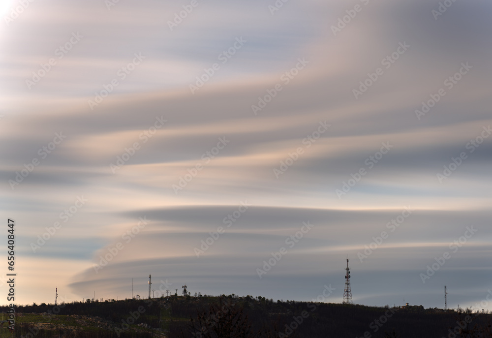 Long Exposure of Revolutionary Clouds Over a Communications Mountain