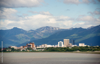 Office Buildings City Skyline Downtown Anchorage Alaska USA