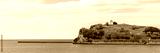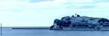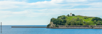 Panoramic view of Pointe Sainte-Barbe and its seawall on the atlantic ocean in Saint-Jean-de-Luz, France
