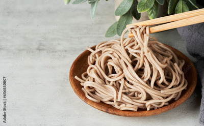 soba noodle on white table background. soba noodle table background. soba noodle food background