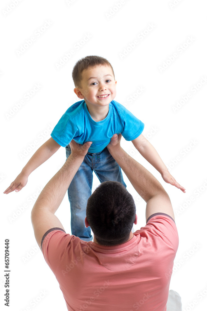 dad playing with kid isolated on white