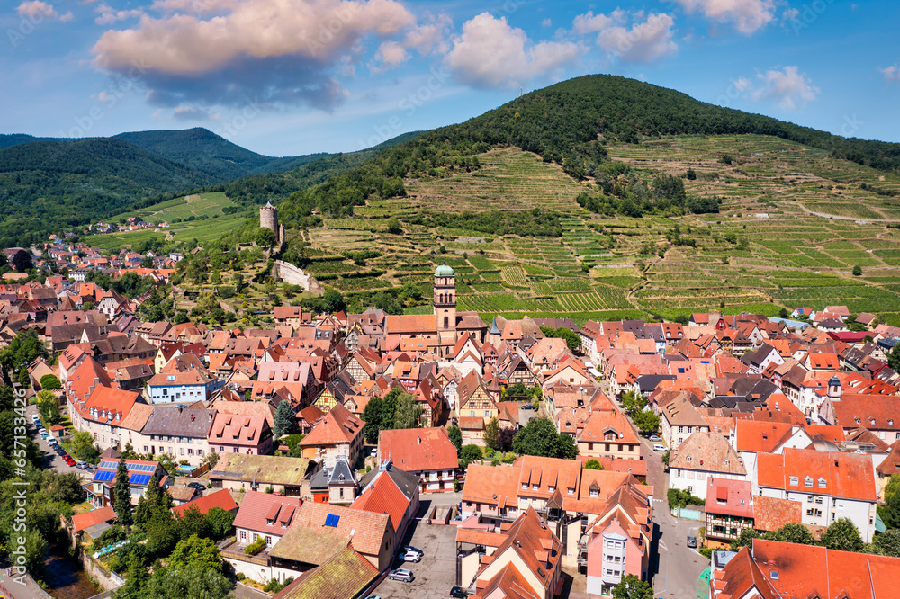 Kaysersberg in Alsace, one of the most beautiful villages of France. Kaysersberg in Alsace in the department of Haut-Rhin of the Grand Est region of France. Small village of Kaysersberg in Alsace.