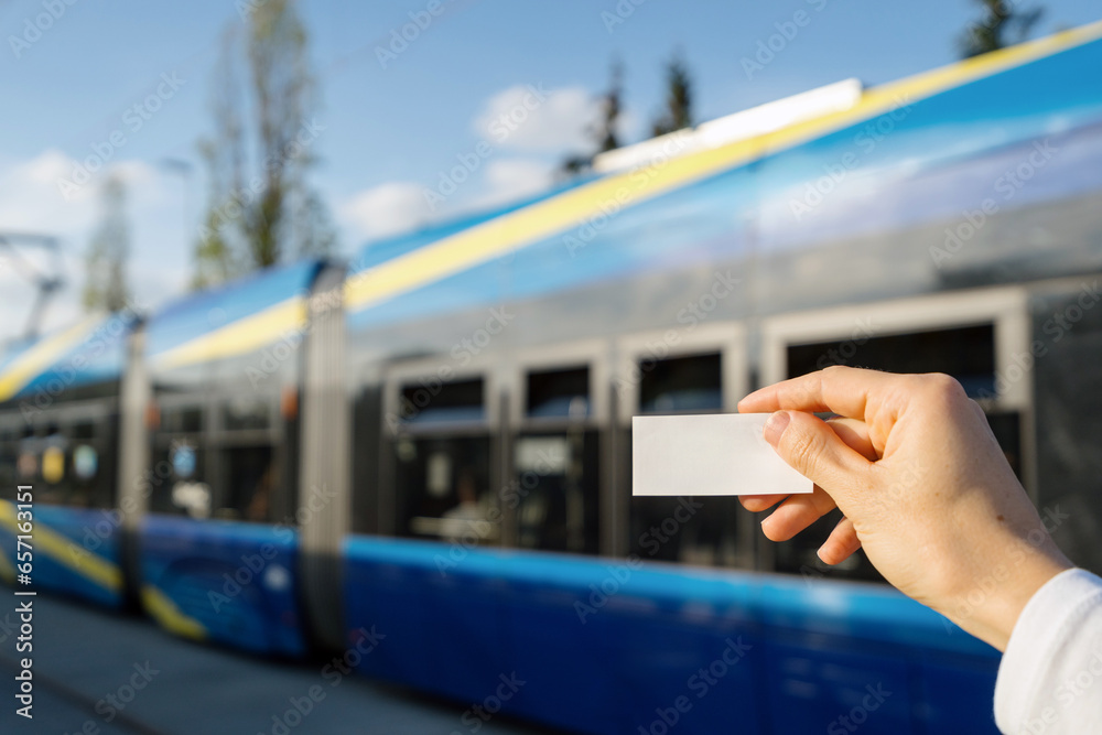 Selective focus on paper ticket in passenger hand