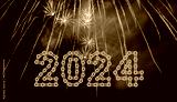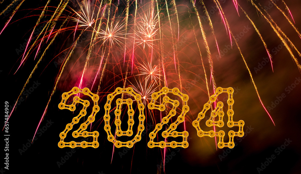 festive firework sparklers with 2024 Happy New Year made from golden chain links