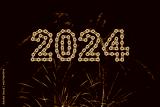 festive firework sparklers with 2024 Happy New Year made from golden chain links