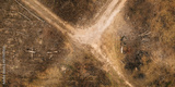 Forest Deforestation Area Landscape. Concept Of Save Nature. Uncontrolled Deforestation Concept. Autumn Season. Aerial View Of Crossroads At Deforestation Area.Forest Clearance.