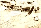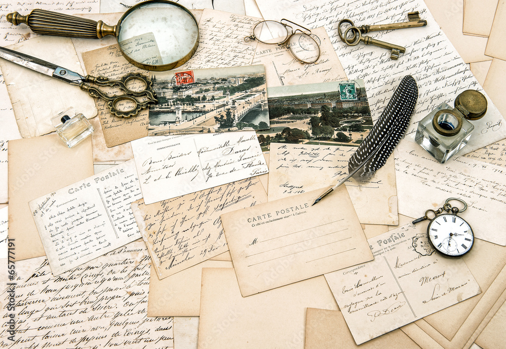 old handwritten french letters and postcards, vintage office acc