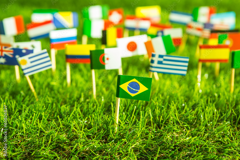 Paper cut of flags on grass for Soccer championship 2014