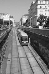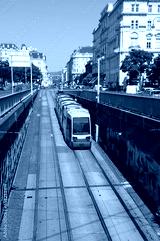 tram for public transport that goes down the underpass towards the terminus in the city