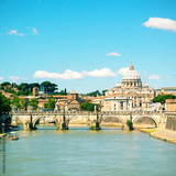 Sunny scenic view of St Peter's basilica in Vatican City, Rome, Italy