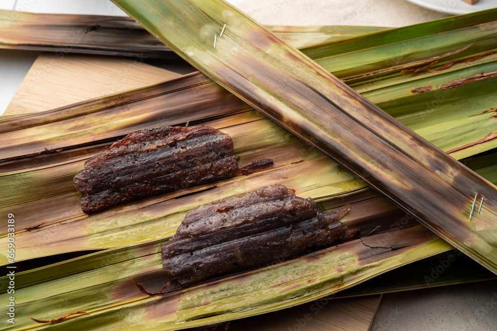 Thai sweetmeat made of flour, coconut and sugar (khanom jaak) Nipa palm dessert
