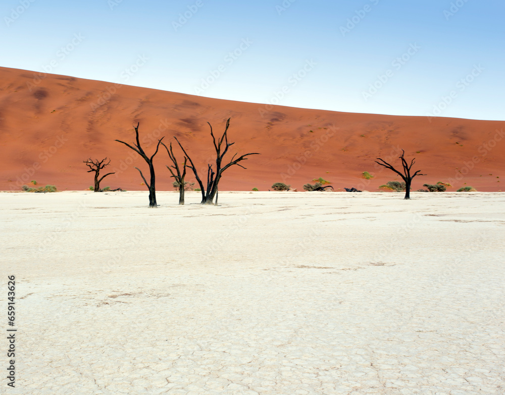 red sand dunes, salt ground and dead trees, the landscape at Deadvlei