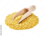 bulgur durum wheat isolated on white background. pile of bulgur durum wheat isolated. heap of bulgur durum wheat in wood scoop isolated