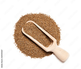 top view flat lay perilla frutescens deulkkae seed isolated on white background. pile of perilla frutescens deulkkae seed isolated. heap of perilla frutescens deulkkae seed in wood scoop isolated
