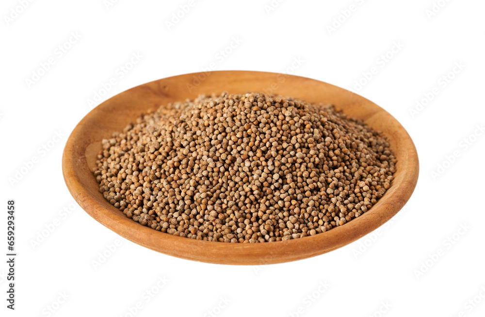 perilla frutescens deulkkae seed isolated on white background. pile of perilla frutescens deulkkae seed isolated. heap of perilla frutescens deulkkae seed in wood bowl isolated