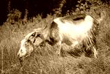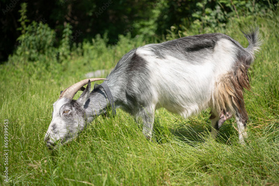 Portrait of a goat on a farm in the village.