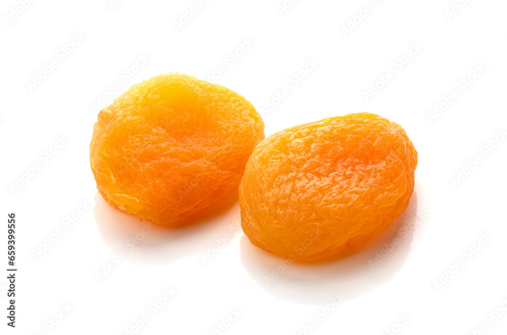 Dried apricots on a white background