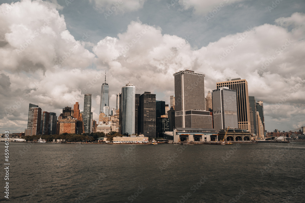 Scenic view of Downtown Manhattan and the bay. New York, USA