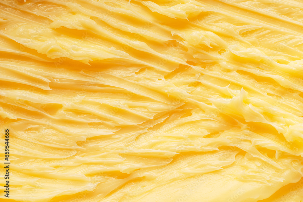 Soft melted rippled butter surface. Macro shot.