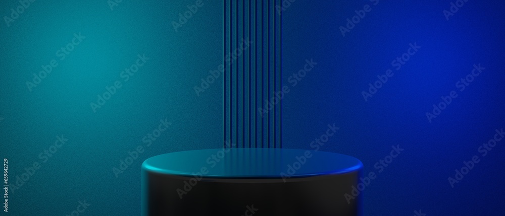 3d illustration rendering of technology futuristic cyberpunk display, gaming scifi stage pedestal background, gamer banner sign of chromatic psychedelic fluorescent podium