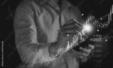 Stock market graph analysis concept. Broker planning strategy for investment in stock, forex, financial, index fund, exchange rate high risk to high profit. Digital business technology analyze data.