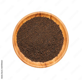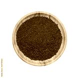 top view flat lay indian tea masala assam powder isolated on white background. pile of indian tea masala assam powder isolated. heap of indian tea masala assam powder isolated in wood bowl