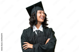 Young university graduate Argentinian woman over isolated background happy and smiling