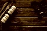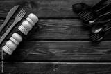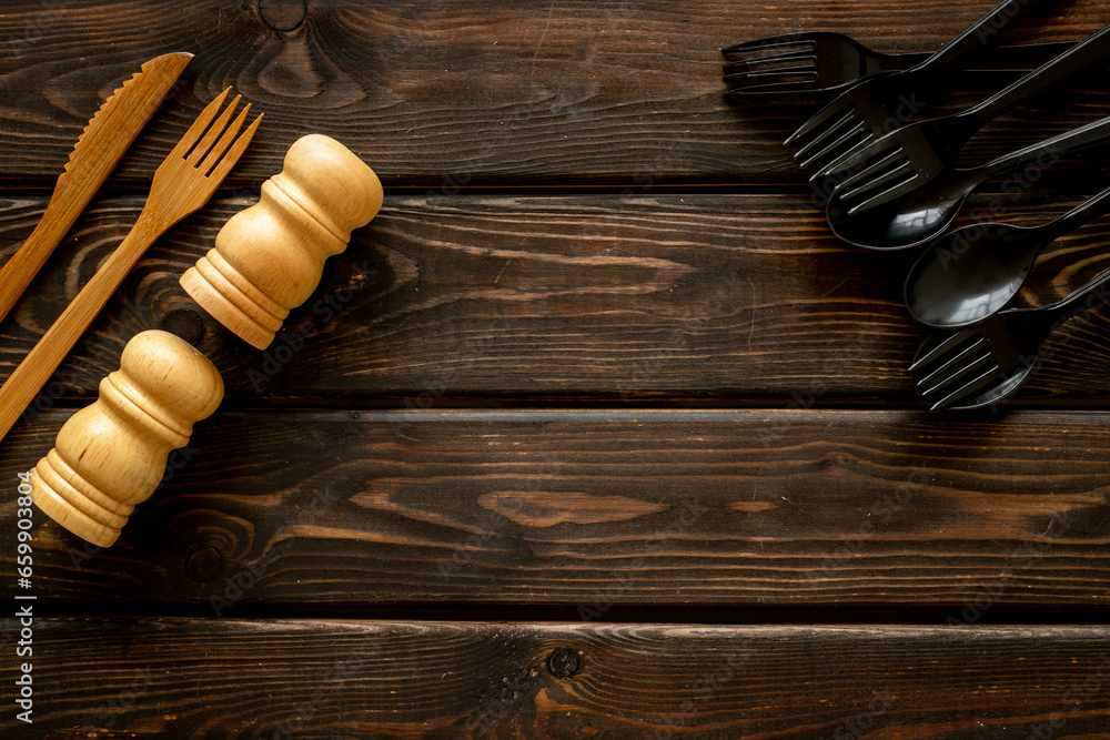 Eco friendly wooden and harmful plastic cutlery. Zero waste concept
