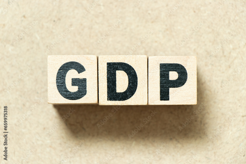 Alphabet letter block in word GDP (Abbreviation of good distribution practice or gross domestic product) on wood background