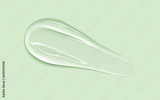 Clear cosmetic gel serum oil texture isolated on mint green background. Hyaluronic acid skincare moisturizer product